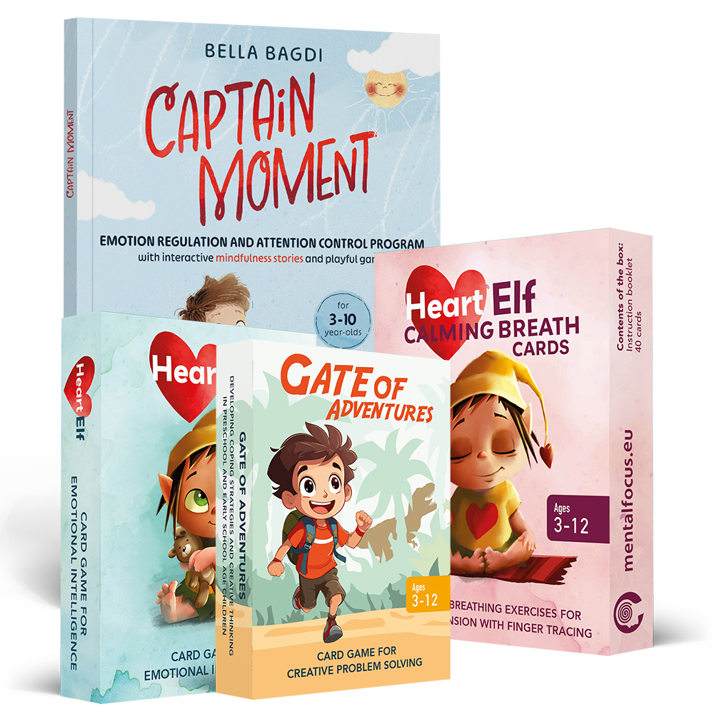 Heart Elf Card Game, Heart Elf Calming Breath Cards, Captain Moment – Emotion Regulation and Attention Control Program, and Gate of Adventures Card Game — all in one bundle.